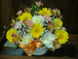 花材・・・・ガ−ベラ.カーネション・カスミソウ・アルストロメリア他